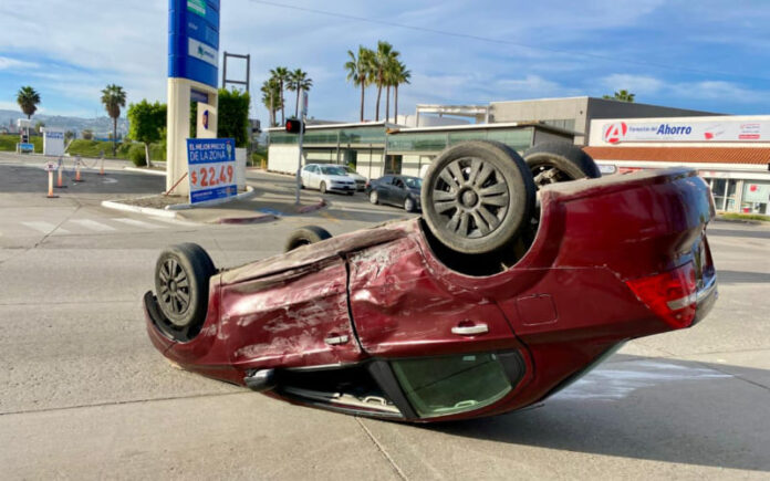 TIJUANA, DICIEMBRE 28, 2025.- La mañana de este domingo se registró un accidente de tránsito sobre el bulevar Insurgentes, a la altura de la colonia Los Álamos, luego de que un vehículo presuntamente circulaba a exceso de velocidad.