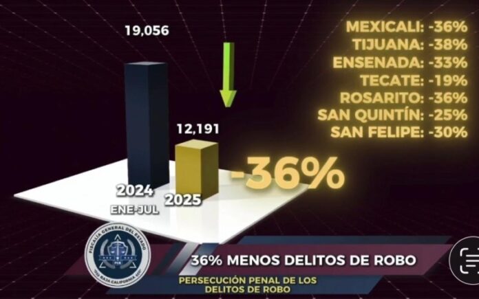 Disminución del 36% en robos durante 2025 en Baja California: FGE