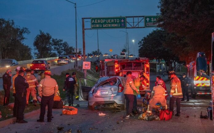Al arribar al lugar, los bomberos localizaron a personal de la Cruz Roja, quienes ya se encontraban brindando atención prehospitalaria a los ocupantes del vehículo involucrado, un automóvil compacto marca Nissan que circulaba por la zona.