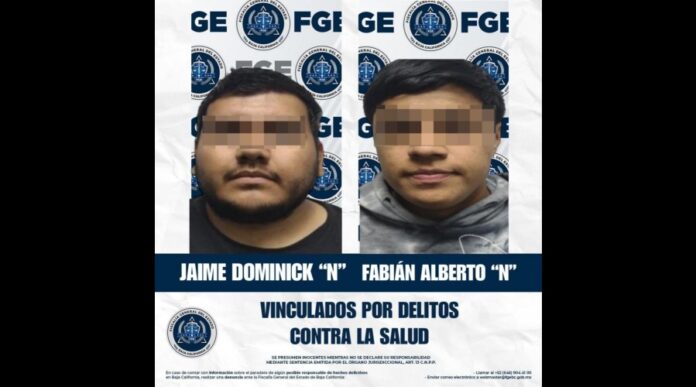 TIJUANA, DICIEMBRE 20, 2025.- La Fiscalía General del Estado, a través de la Fiscalía Especializada en Narcomenudeo, obtuvo la vinculación a proceso de Jaime Dominick “N” y Fabián Alberto “N”, por su probable responsabilidad en delitos contra la salud, en la modalidad de psicotrópico denominado metanfetamina.