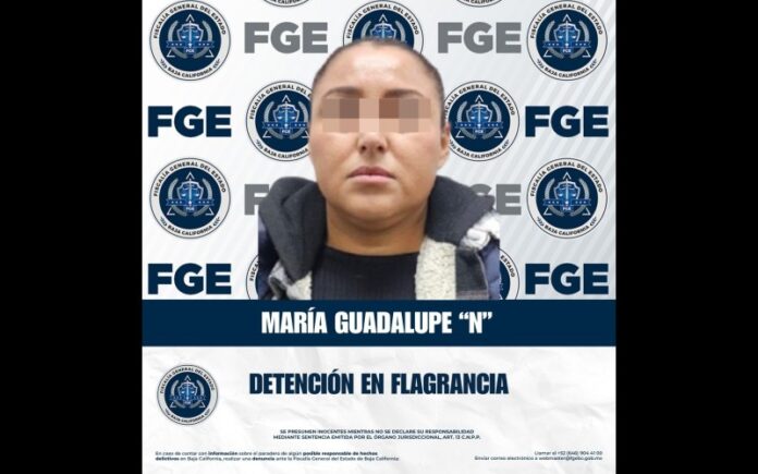 TIJUANA, ENERO 15, 2026.- La Fiscalía General del Estado de Baja California, a través de la Agencia Estatal de Investigación (AEI), informó la detención en flagrancia de María Guadalupe “N”, por su probable participación en el delito de robo de vehículo, en hechos ocurridos en la ciudad de Tijuana.