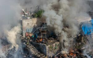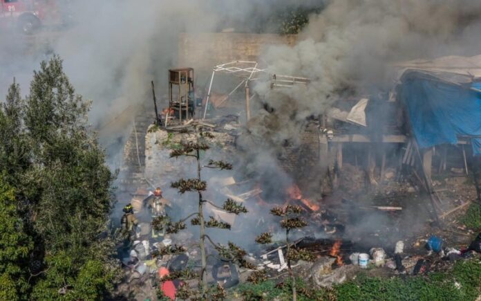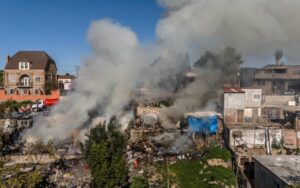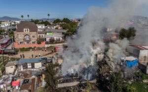 TIJUANA, ENERO 15, 2026.- Un fuerte incendio se registra en estos momentos en la colonia Libertad, parte alta, afectando a varias viviendas ubicadas sobre la avenida García Naranjo.