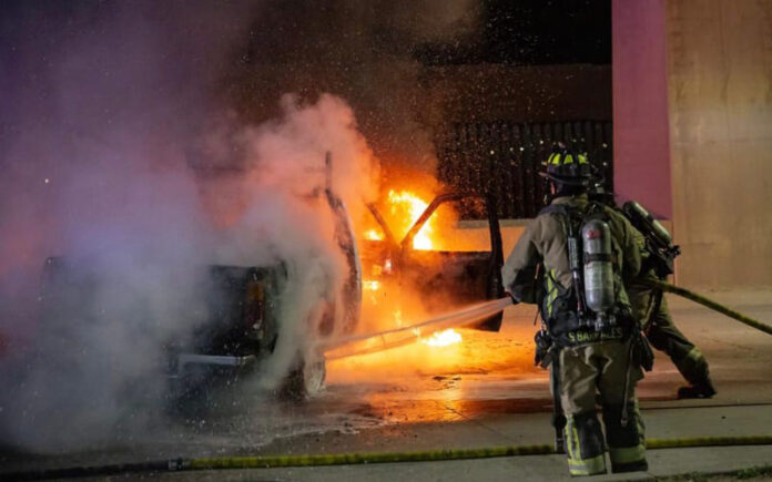 Incendian vehículo en la avenida Internacional