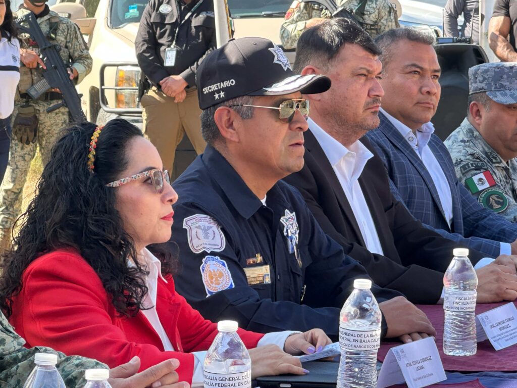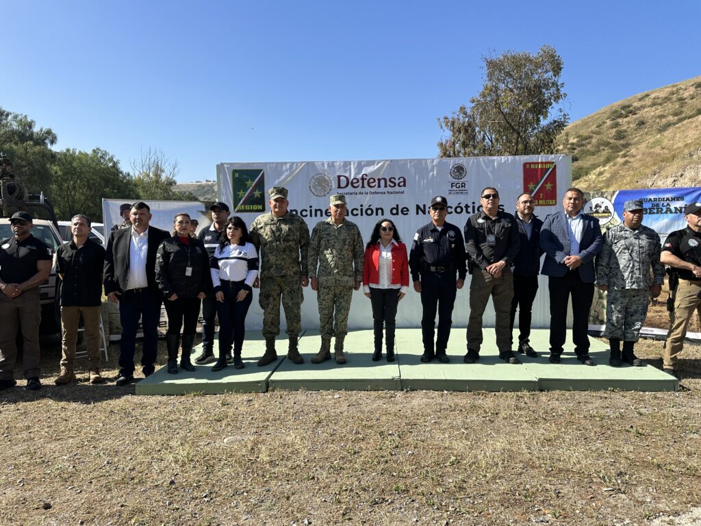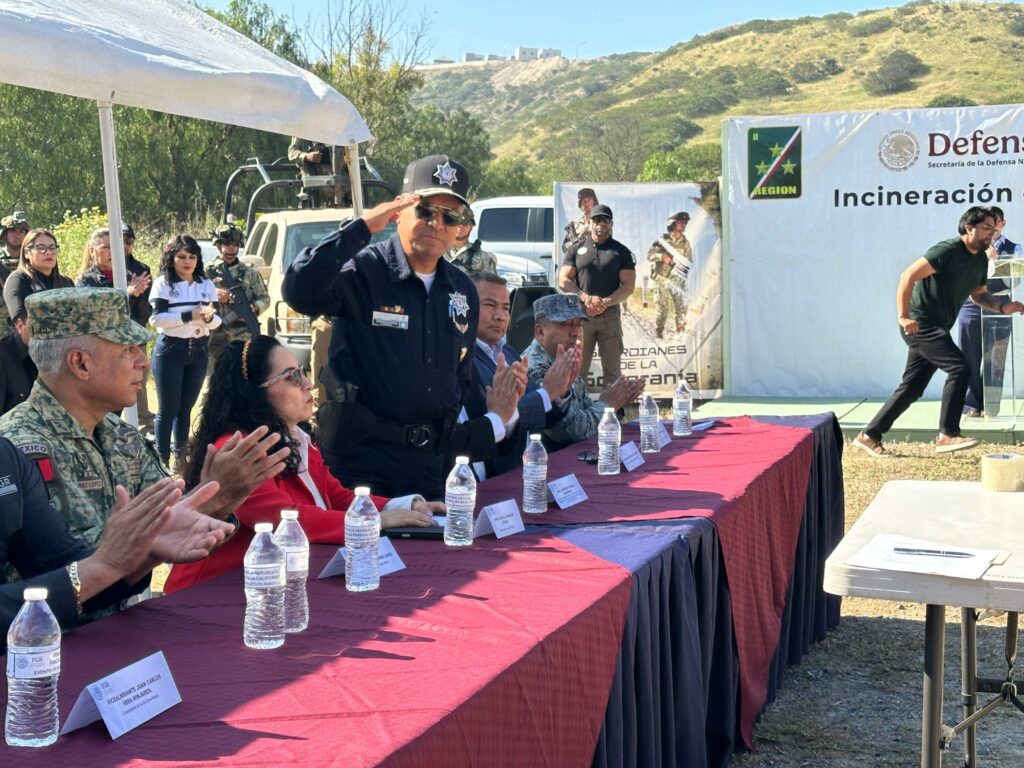 En una mesa encabezada por militares y la fiscal federal de Baja California, Maestra Teófila González Lozada se verificó la incineración de