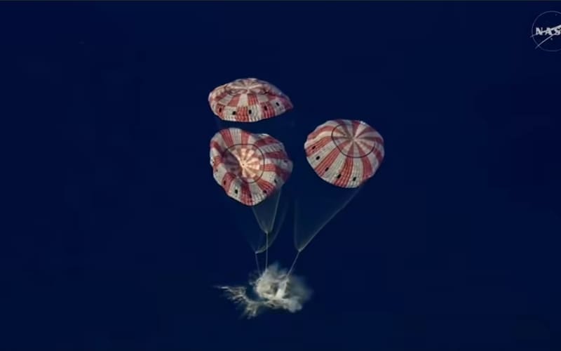 Tras completar su trayectoria en el espacio, la cápsula reingresó a la atmósfera terrestre y descendió de manera controlada hasta impactar suavemente en el mar, donde equipos especializados iniciaron de inmediato las maniobras de recuperación.