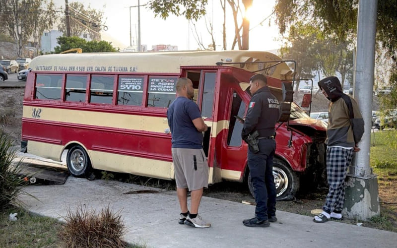 TIJUANA, ABRIL 20, 2026.- Un accidente vehicular se registró sobre el bulevar Insurgentes y avenida Cochimí, a la altura de la colonia Azteca, luego de que una unidad de transporte público presuntamente sufriera una falla mecánica durante la mañana de este lunes 20 de abril.
