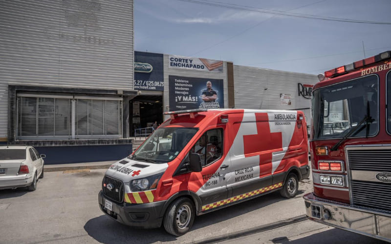 TIJUANA, ABRIL 21, 2026.- Un hombre de aproximadamente 40 años resultó lesionado la mañana de este martes, luego de que le cayeran encima quince cubiertas de madera al interior de un negocio ubicado sobre el bulevar Insurgentes, en Tijuana.