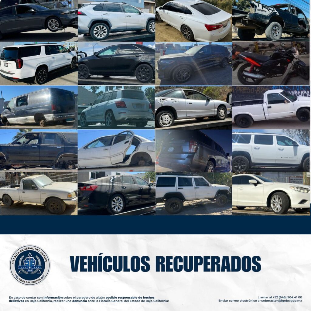 TIJUANA, ABRIL 20, 2026 .- La Agencia Estatal de Investigación, a través de la Unidad de Investigación Especializada en Robo de Vehículos, informa que, del 1 al 19 de abril de 2026, se logró la recuperación de 37 vehículos con reporte de robo en distintos puntos de la ciudad, como resultado de labores de investigación y operativos estratégicos.