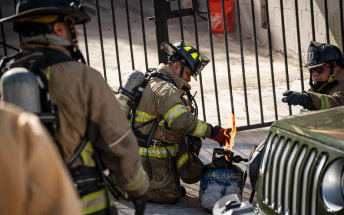Al arribo de las unidades se confirmó que se trató de un incendio provocado por una fuga en una mina de gas de pequeñas dimensiones, con capacidad aproximada de 10 kilogramos, la cual se encontraba encendida.
