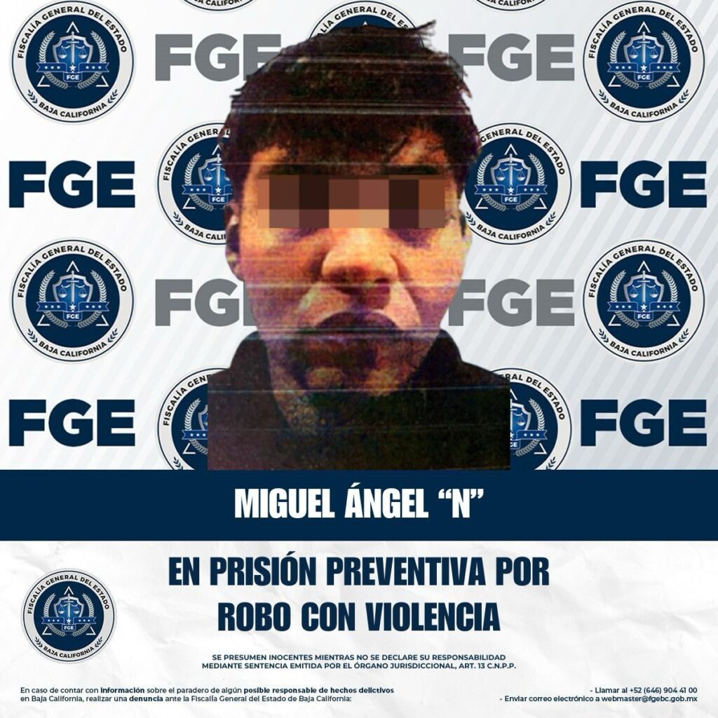 TIJUANA, ABRIL 19, 2026 .- La Fiscalía Regional de Tijuana logró la reapertura del proceso penal e impuso la medida cautelar de prisión preventiva en contra de Miguel Ángel “N”, por su presunta responsabilidad en el delito de robo con violencia.