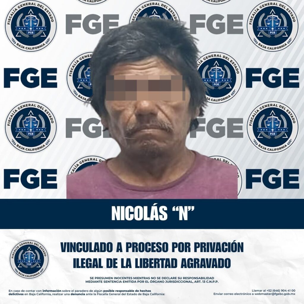 TIJUANA, ABRIL 1, 2026 .- La Unidad de Investigación con Detenido, adscrita a la Fiscalía Regional de Tijuana, obtuvo la vinculación a proceso y la imposición de la medida cautelar de prisión preventiva en contra de Nicolás “N”, por su presunta responsabilidad en el delito de privación ilegal de la libertad agravada.