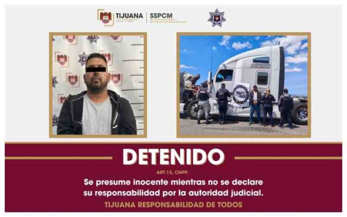 Tijuana, 22 DE ABRIL DEL 2026. La Secretaría de Seguridad y Protección Ciudadana Municipal (SSPCM) informa que, gracias a la cooperación y el intercambio de información con autoridades de Estados Unidos, se logró la detención de una persona que conducía un tractocamión con reporte de robo vigente en el vecino país.