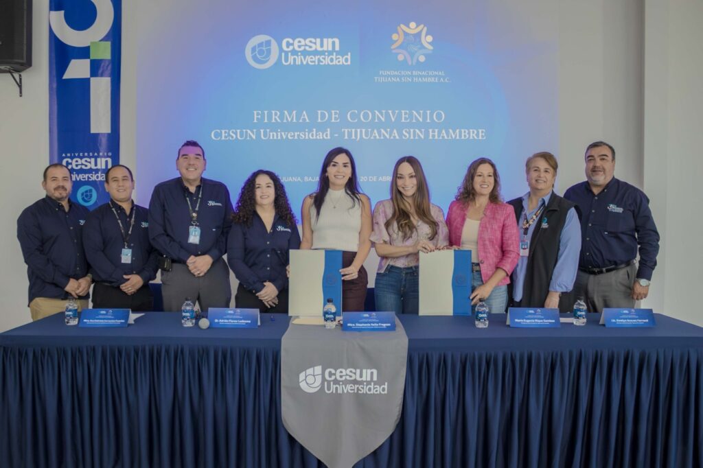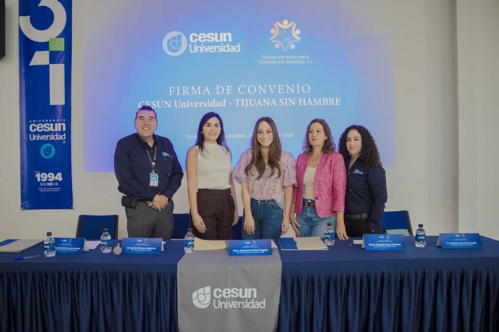 TIJUANA, ABRIL 22, 2026.- Con el objetivo de fortalecer el impacto social en la región, CESUN Universidad y la Fundación Tijuana Sin Hambre formalizaron un convenio de colaboración que permitirá la participación activa de estudiantes en iniciativas dirigidas a sectores vulnerables de la ciudad.