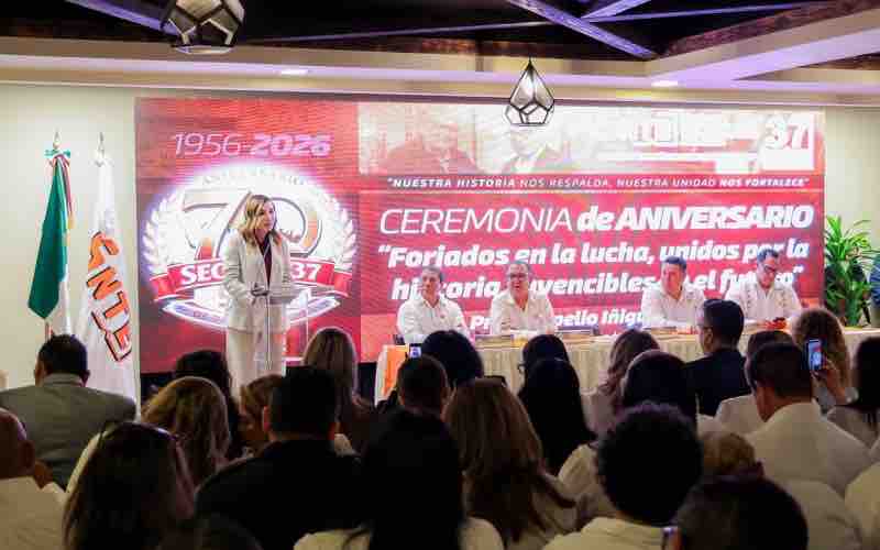 MEXICALI, ABRIL 14, 2026.-Bajo la firme convicción de que la educación es eje central de la transformación, el Gobierno del Estado trabaja de la mano con el magisterio para saldar deudas históricas y dignificar la labor docente, destacó la gobernadora Marina del Pilar Avila Olmeda al encabezar el 70 aniversario de la Sección 37 del Sindicato Nacional de Trabajadores de la Educación (SNTE).