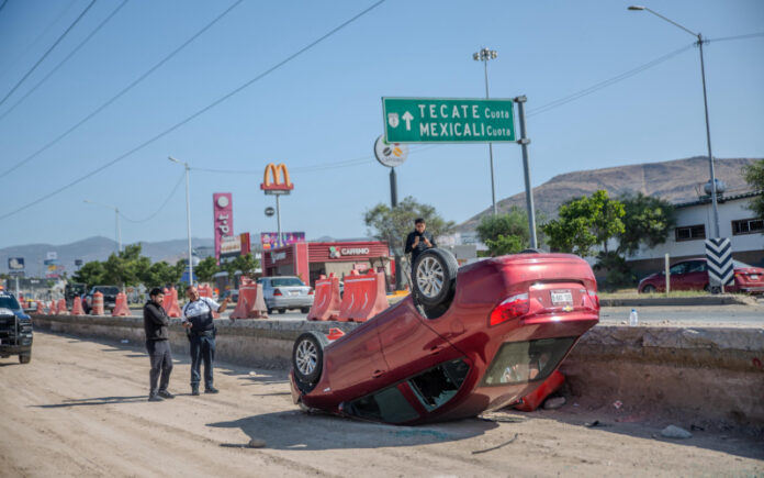 De acuerdo con información extraoficial, el conductor circulaba a alta velocidad por el carril izquierdo en dirección hacia Otay cuando perdió el control del vehículo, salió del camino y terminó en el área donde actualmente se realizan trabajos viales.